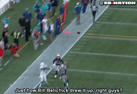 On the Dolphins’ final offensive play, the ball was intercepted by Duron Harmon. I noticed that McCourty & Cole immediately motioned for him to take a knee. That meant that there was no chance of anything bad happening (fumble, penalty, etc.) & the offense could come out & take a knee & end the game.