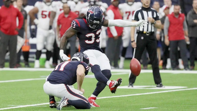 Texans kicker Ka’imi Fairbairn is a tremendous kicker who led the league in scoring in 2018 & has made over 86 of his field goals in his professional career. Unfortunately he suffered a quadriceps injury in the first half of the game against the Buccaneers & was ruled out of the rest of the game.