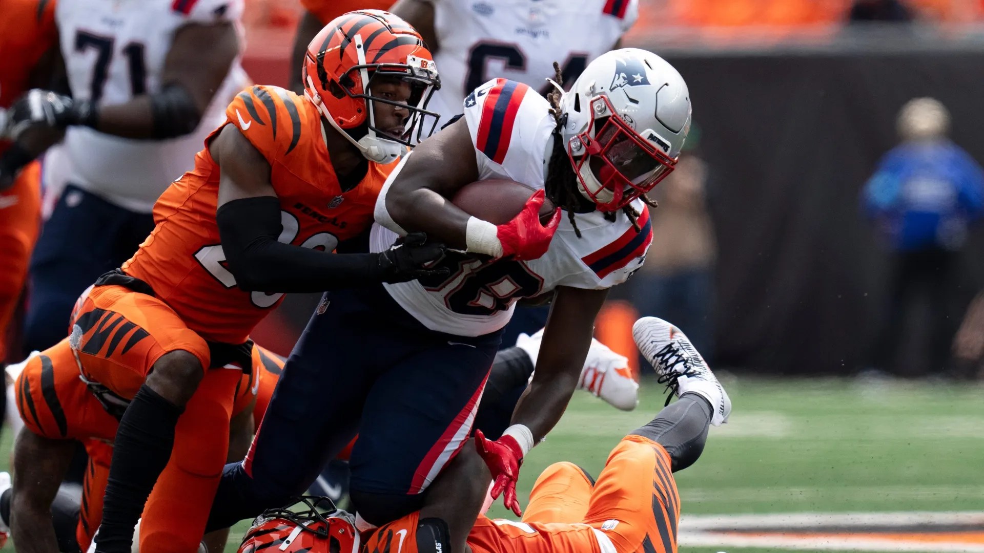 One of the few highlights for the Bengals was the performance of their undrafted rookie punter. He punted 4 times for 258 yards! The 64.5 yard average punt set a team record. His most impressive punt was also a team record of 80 yards! It came within inches of going out of bounds & pinning the Patriots inside their 1-yard line. He consistently was able to flip field position for the team.